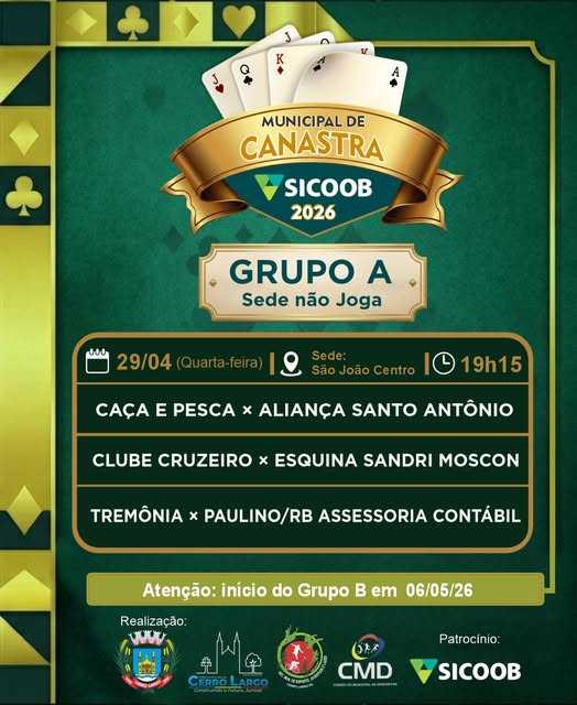 A organização orienta que acompanhe as redes sociais oficiais da Prefeitura Municipal e do CMD, onde serão divulgadas as tabelas com os jogos das rodadas e demais informações.