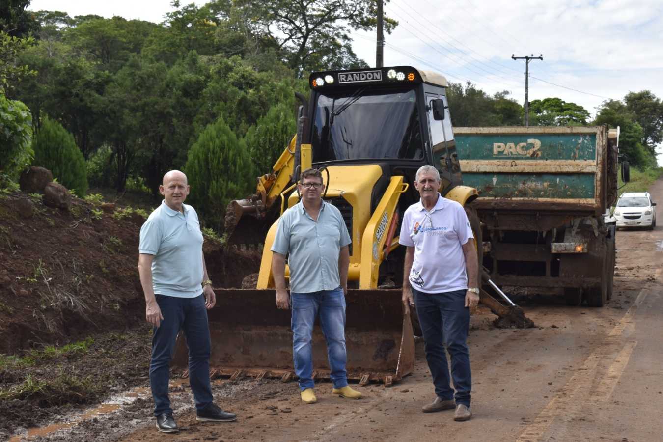 Na manhã de quarta-feira (31/12), em razão das intensas chuvas registradas em Cerro Largo, o prefeito Pedro Butzen e o vice-prefeito Ambrósio Ten Caten, juntamente com o secretário de Obras, Viação e Serviços Públicos, Artêmio Winter, realizaram contato com o DAER de Santa Rosa, que autorizou a intervenção da Administração Municipal na ERS 165, no trecho que liga à BR-392, na localidade de Linha São João.