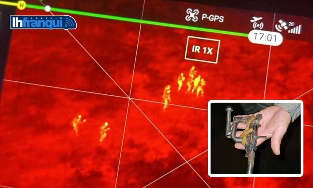 Com o uso do equipamento aéreo, as equipes conseguiram localizar o suspeito escondido na vegetação e efetuar a prisão de forma segura e eficiente.