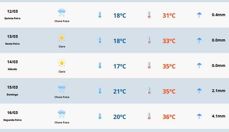 Em Cerro Largo, as temperaturas oscilam entre 18°C e 31°C.