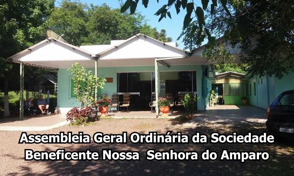 O presidente da SOCIEDADE BENEFICENTE NOSSA SENHORA DO AMPARO, CNPJ 00.750.288/0001-11, no uso das suas atribuições previstas no artigo 15º do Estatuto Social, convoca os sócios para Assembleia Geral Ordinária a realizar-se no dia 28 de janeiro de 2026, às 18h, em primeira convocação e às 19h, em segunda e última convocação, na sede da Sociedade situada à Rua Serro Azul, nº 1140, Cerro Largo, RS, para deliberarem sobre a seguinte Ordem do Dia: