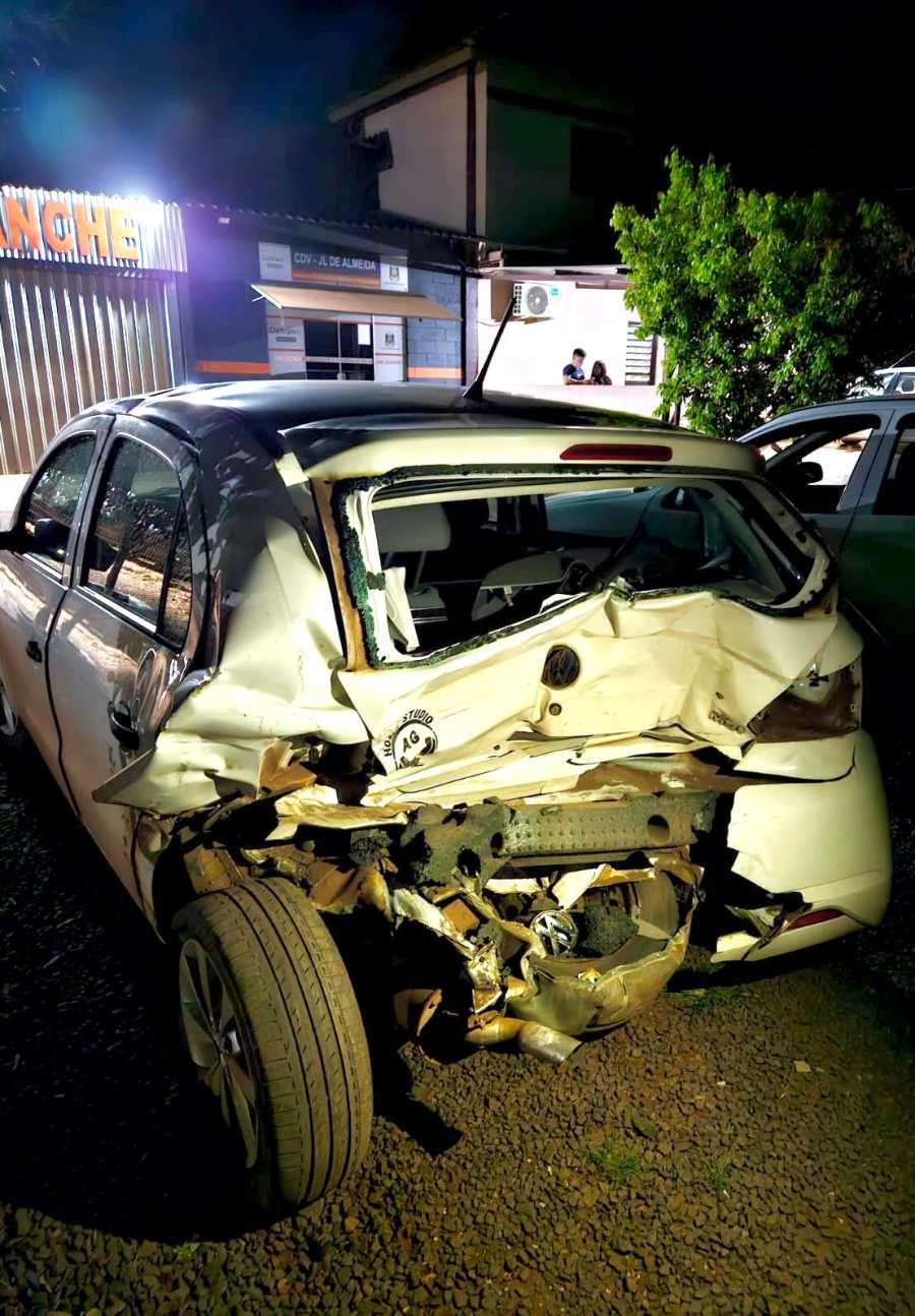 A colisão tipo traseira, fez com que o Gol saísse da pista de rolamento, causado pela força do impacto da caminhonete.