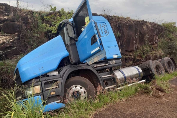 Um "cavalo mecânico" Scania, desengatado, acidentou-se na rodovia BR 392, em Cerro Largo.