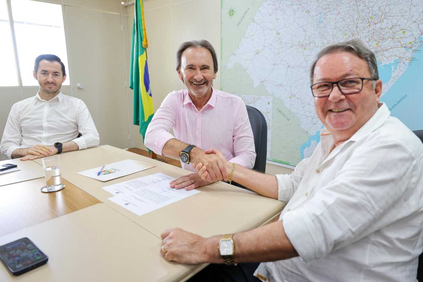 A formalização do contrato contou com a presença do empresário Eleonor Oscar Becker, representando a Lojas Becker, empresa parceira e incentivadora do projeto; de Maurício Holsback Lima, representando a construtora responsável pela execução da obra; do diretor-geral do DAER/RS, Luciano Faustino da Silva; do assessor Diego Cettolin; e do secretário de Estado de Logística e Transportes, Juvir Costella.