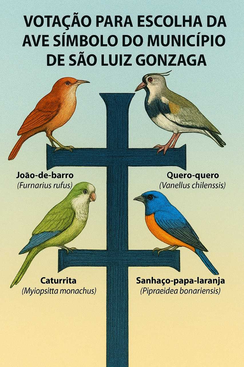 O projeto de extensão universitária Observatório de Aves Missioneiras, da Universidade Estadual do Rio Grande do Sul (Uergs), está convidando os são-luizenses para votarem em uma das aves indicadas para ser um símbolo de São Luiz Gonzaga.