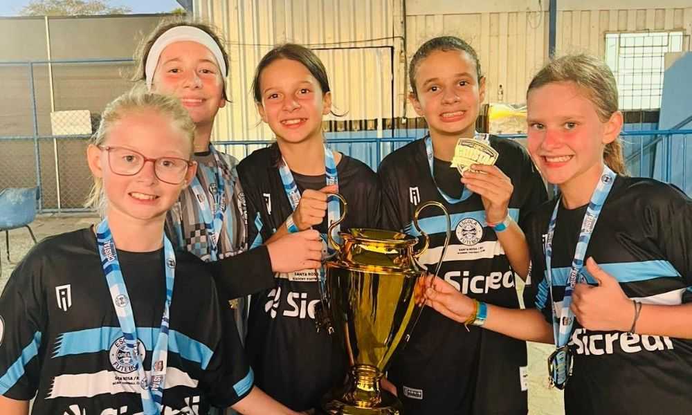 Alexandra Schuster, Helena da Silva, Júlia Zuchetto, Natália Strieder e Manuela Scherer, atletas da escolinha de futebol feminino do Fritz Society, de Cerro Largo, sagraram-se campeãs na Copa Cristal Série Prata, pela categoria Sub-11. Elas atuaram pela Escola do Grêmio Santa Rosa, escolinha licenciada pelo Grêmio FBPA.
