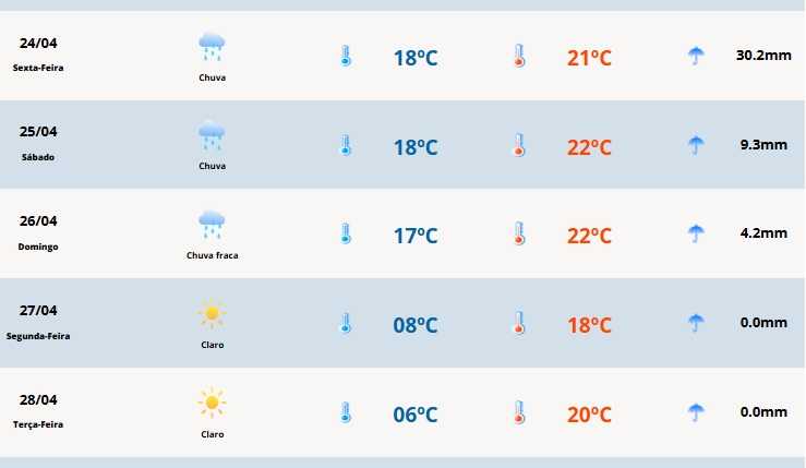 Em Cerro Largo, as temperaturas oscilam entre 18°C e 21°C.