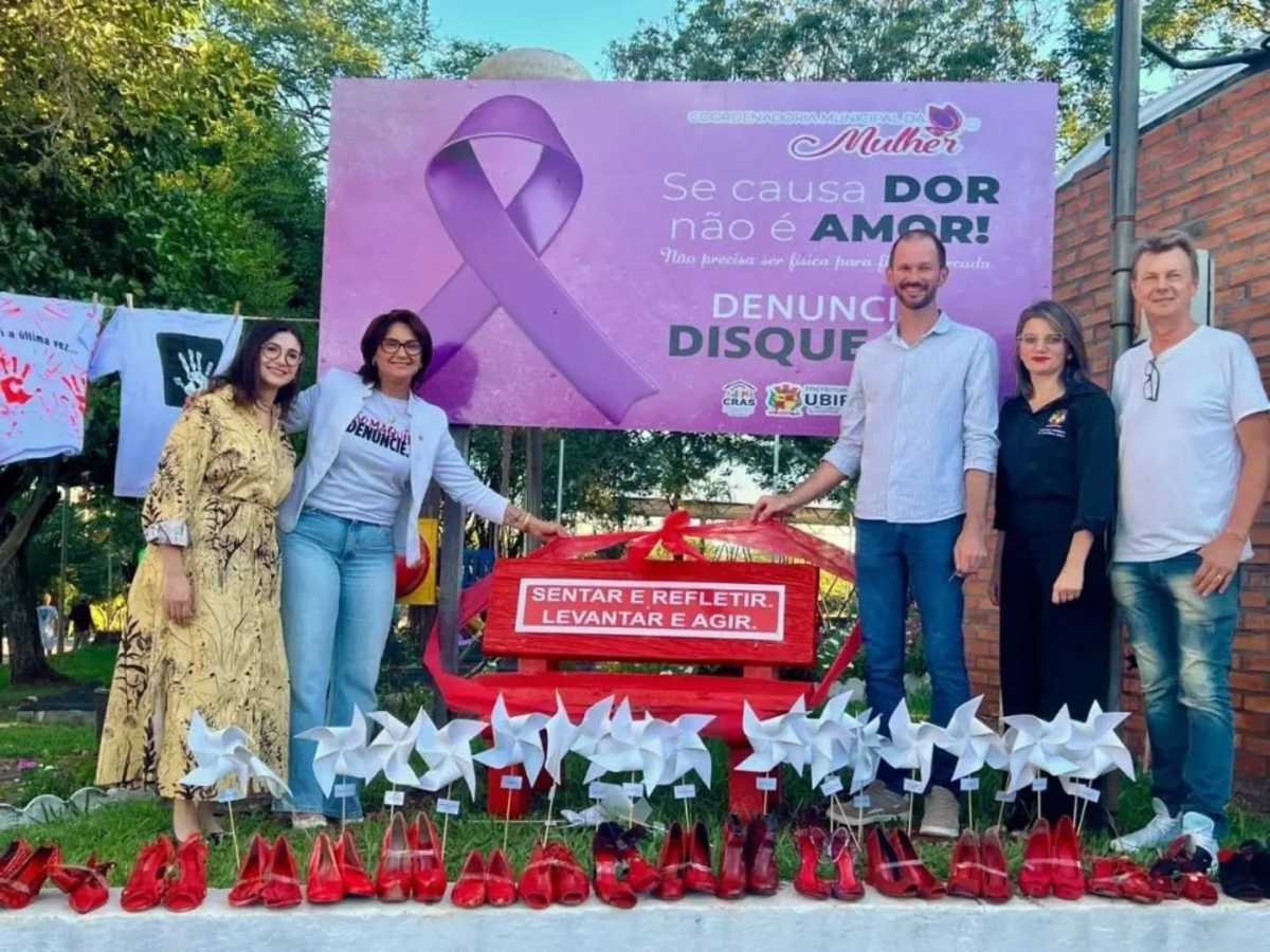 Durante o ato, também foram prestadas homenagens às 23 vítimas de feminicídio registradas neste ano no Rio Grande do Sul. A ação contou com a exposição de 23 calçados vermelhos, cada um representando uma vida interrompida, além da colocação de cataventos brancos, simbolizando um pedido de paz.