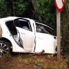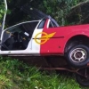 Caminhonete Ford Ranger ficou destruída após sair da pista
