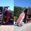 Caminhão tombou em cima da ponte e aguarda a retirada para liberar trânsito no local