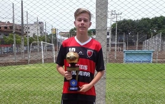 PRESENÇA - E o cerro-larguense Pedro Marczewski Rigodanzo atuou pela equipe da Escolinha Rubro Negra, de Crissiumal, que conquistou a terceira colocação na categoria sub-16.