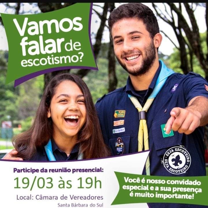 Na próxima quinta-feira, dia 19 de março, a partir das 19h, a Câmara de Vereadores de Santa Bárbara do Sul sediará um evento, aberto a todos os interessados, para falar sobre o escotismo.