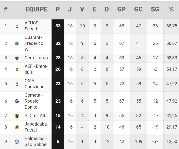 A tabela de partidas do Cerro Largo Futsal/Lojas Becker ficou assim: