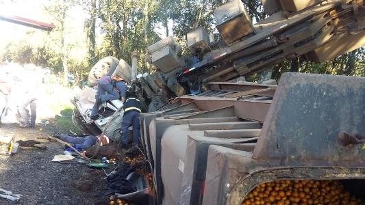 O fato aconteceu ontem à tarde (13), quando um caminhão, com placas de Abelardo Luz/SC, carregado de laranjas perdeu o controle em uma das curvas, no sentido Passo Fundo/Marau.