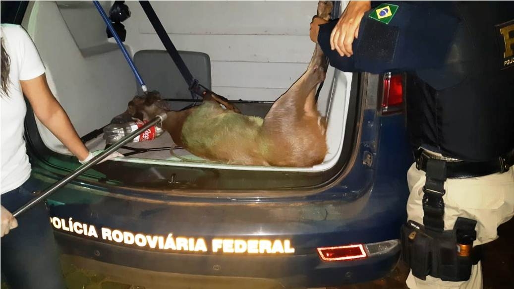 Na noite de ontem (21), na BR 158, em Cruz Alta, a Polícia Rodoviária Federal (PRF) resgatou um veado atropelado.