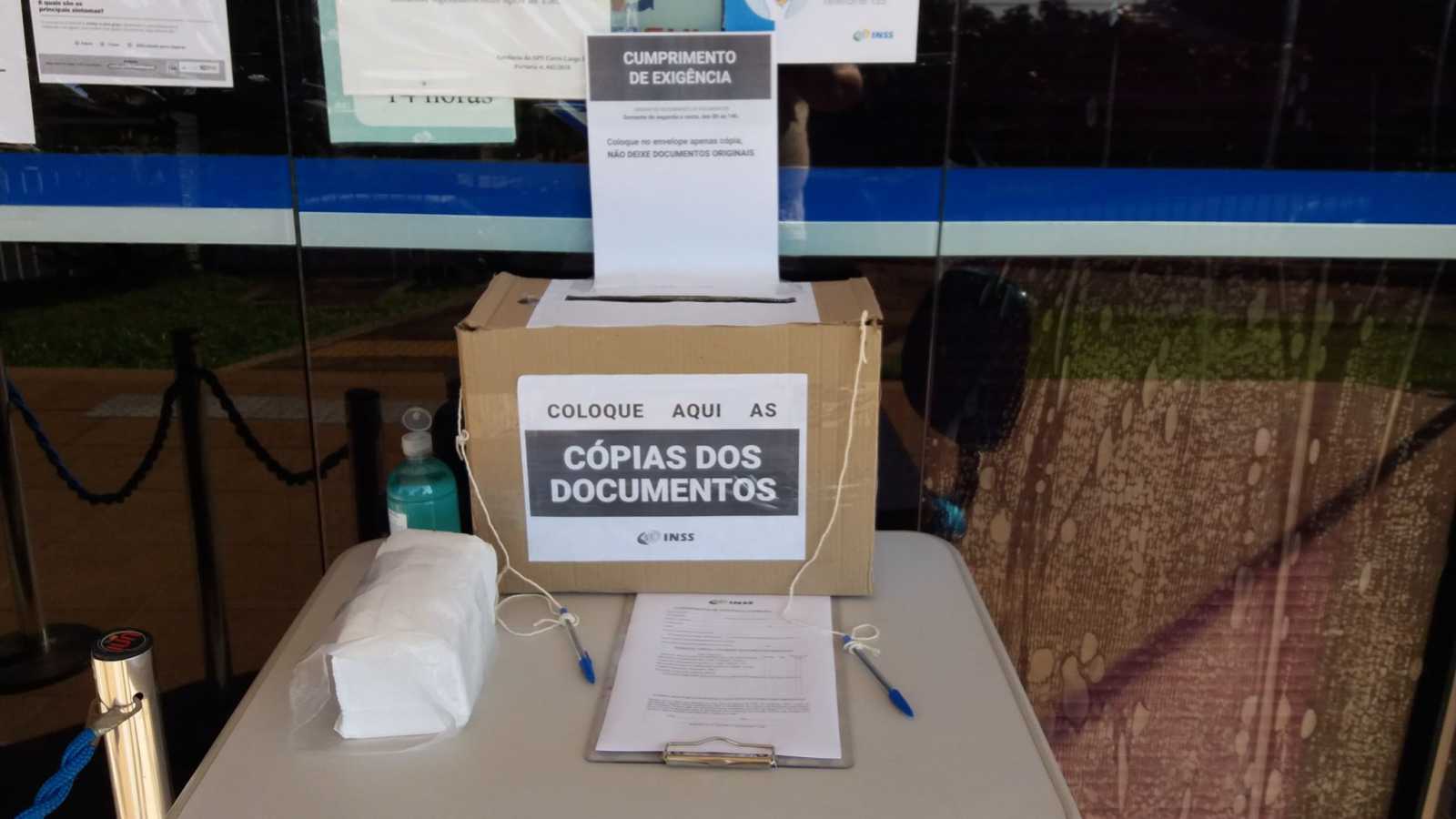 Para proteger a saúde das pessoas, o cumprimento de exigência pela urna ocorrerá sem qualquer contato físico. O cidadão não receberá protocolo ou recibo de entrega das cópias dos documentos, tampouco serão prestadas quaisquer informações ou orientações. O andamento do processo poderá ser acompanhado pelo Meu INSS ou telefone 135.