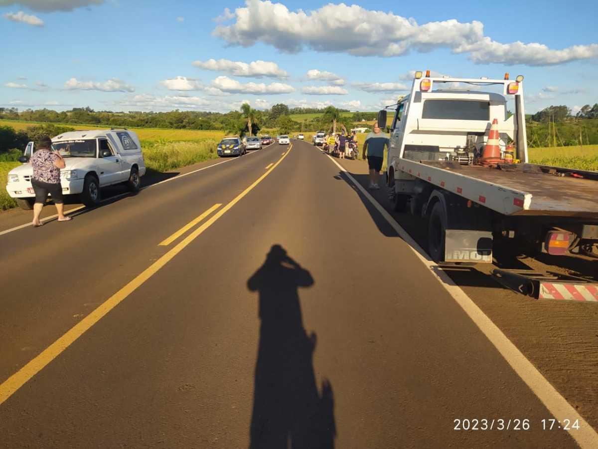 Também foi encontrado o corpo, afastado da motocicleta, em uma lavoura próxima, já em óbito.