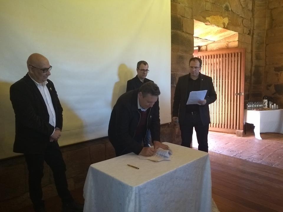 Aconteceu na terça-feira (7), em São Miguel das Missões, o ato de assinatura do projeto de sinalização turística elaborado pelo designer cerro-larguense Gustavo Kaufmann, em parceria com a Funmissões, que sinalizará e guiará quem trafega pelo Rio Grande do Sul aos destinos turísticos missioneiros.