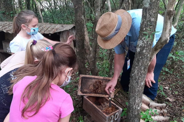 Estudantes das séries iniciais da Escola Municipal de Educação Fundamental Santa Teresa, de Campina das Missões, tiveram a oportunidade de conhecer mais sobre a Meliponicultura, que consiste na produção de mel a partir de abelhas sem ferrão. O grupo foi recebido em uma atividade extracurricular na propriedade de Iterlei Dewes, na comunidade de Vila Teresa.