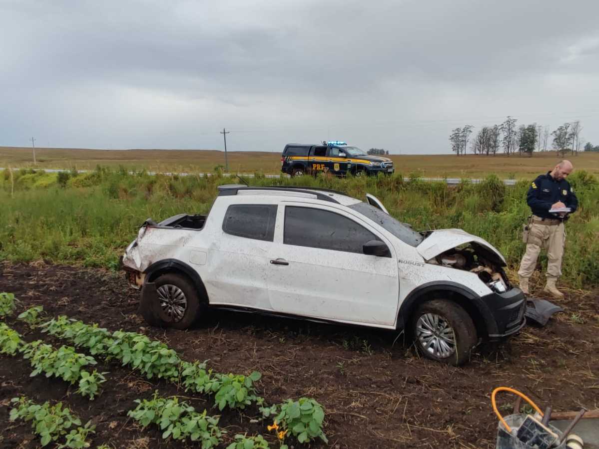 Conforme verificado pelos policiais, a caminhonete deslocava em direção a Santo Antônio das Missões, quando o condutor perdeu o controle da direção após aquaplanar, saindo da pista e capotando.