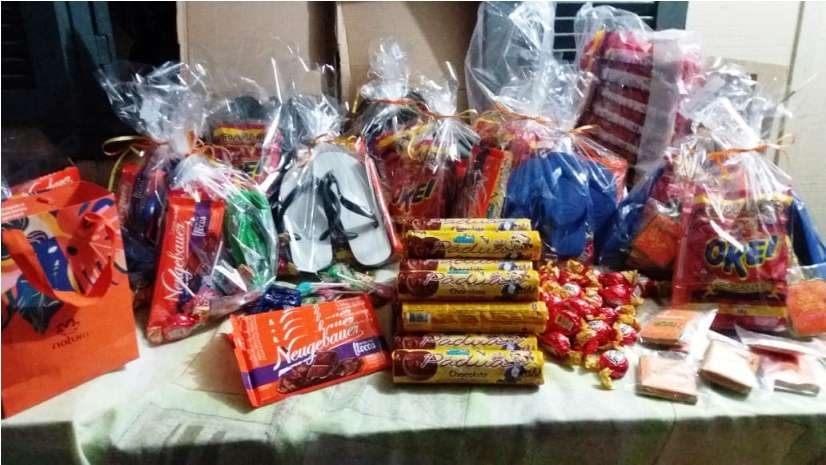 Também ocorreu a entreha de um kit com um par de chinelos (necessidade imediata das crianças) e doces, para alegrar ainda mais o dia dedicado a elas.