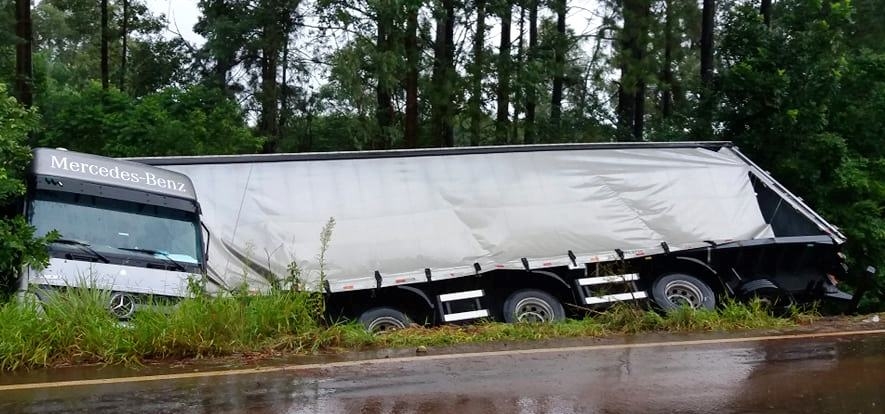 Ao desviar do tronco e de outro veículo, que vinha no sentido contrário, ocorreu o chamado efeito "canivete" ou "L". Com isso, a carreta saiu da pista e o ocupante ficou preso.