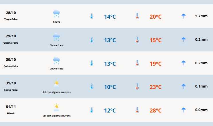 A terça-feira (28/10), será marcada por tempo instável e queda nas temperaturas no Rio Grande do Sul, conforme a MetSul Meteorologia. O sol chega a aparecer com nuvens, mas a nebulosidade aumenta e a chuva avança.