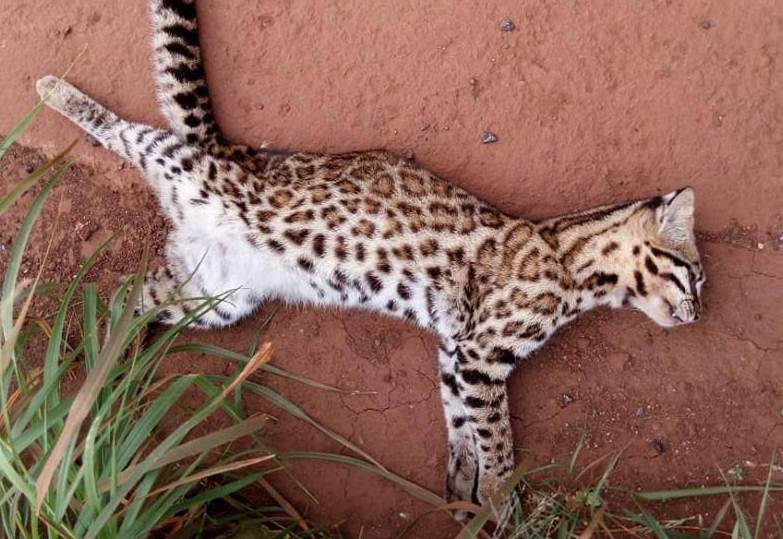 Uma jaguatirica (Leopardus pardalis) foi encontrada morta na manhã de hoje (20), na localidade do Km 10, em Três de Maio.