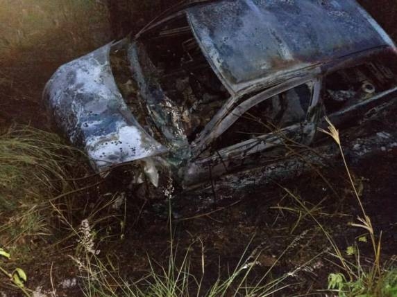 O veículo saiu da pista e pegou fogo, possivelmente após capotar e se chocar num barranco.