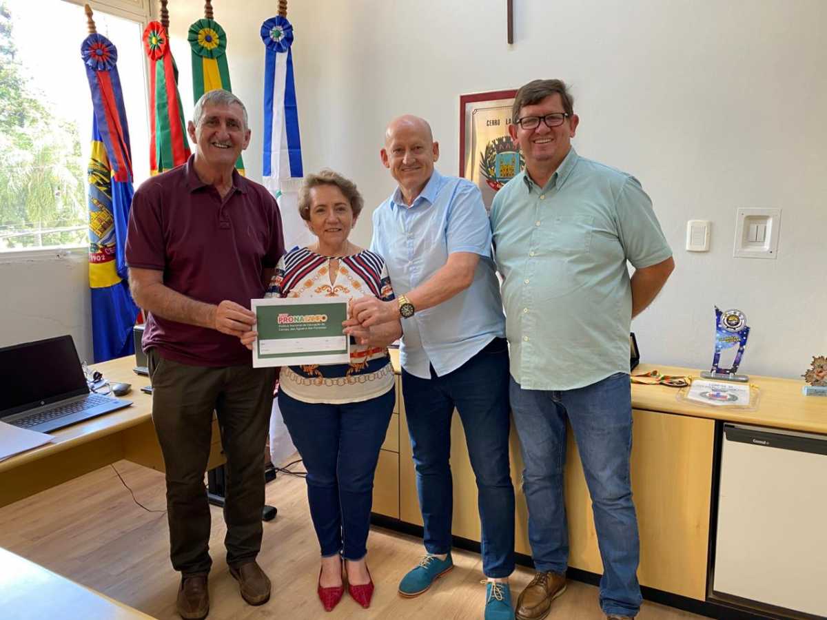 A assinatura da adesão ao programa ocorreu nesta segunda-feira (03/11), no gabinete do prefeito Pedro Butzen, com a presença do vice-prefeito Ambrósio Ten Caten, da secretária de Educação e Cultura, Marta Schoffen, e do secretário de Desenvolvimento Econômico, Projetos e Gestão, Artêmio Winter.