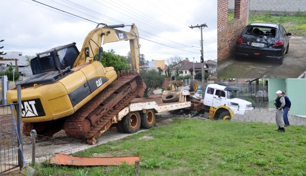 Moradores da Rua João Jacob Strapazzon contaram que o motorista tentou carregar uma escavadeira na prancha, quando o caminhão, desgovernado, desceu pela via e atingiu a casa.