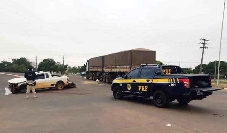 A caminhoneta foi removida ao depósito e o bitrem foi liberado após o registro do acidente.