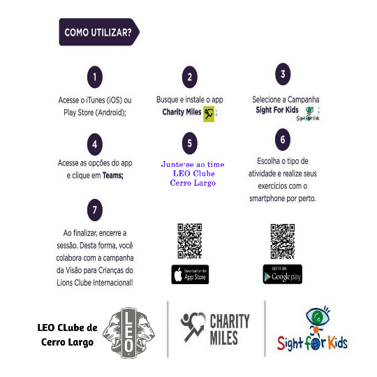 PASSO A PASSO - Na imagem abaixo - na Galeria de Fotos - há o passo a passo de como baixar o App, selecionar a opção Sight for Kids (importante não esquecer isso) e entrar no time Leo Clube Cerro Largo.