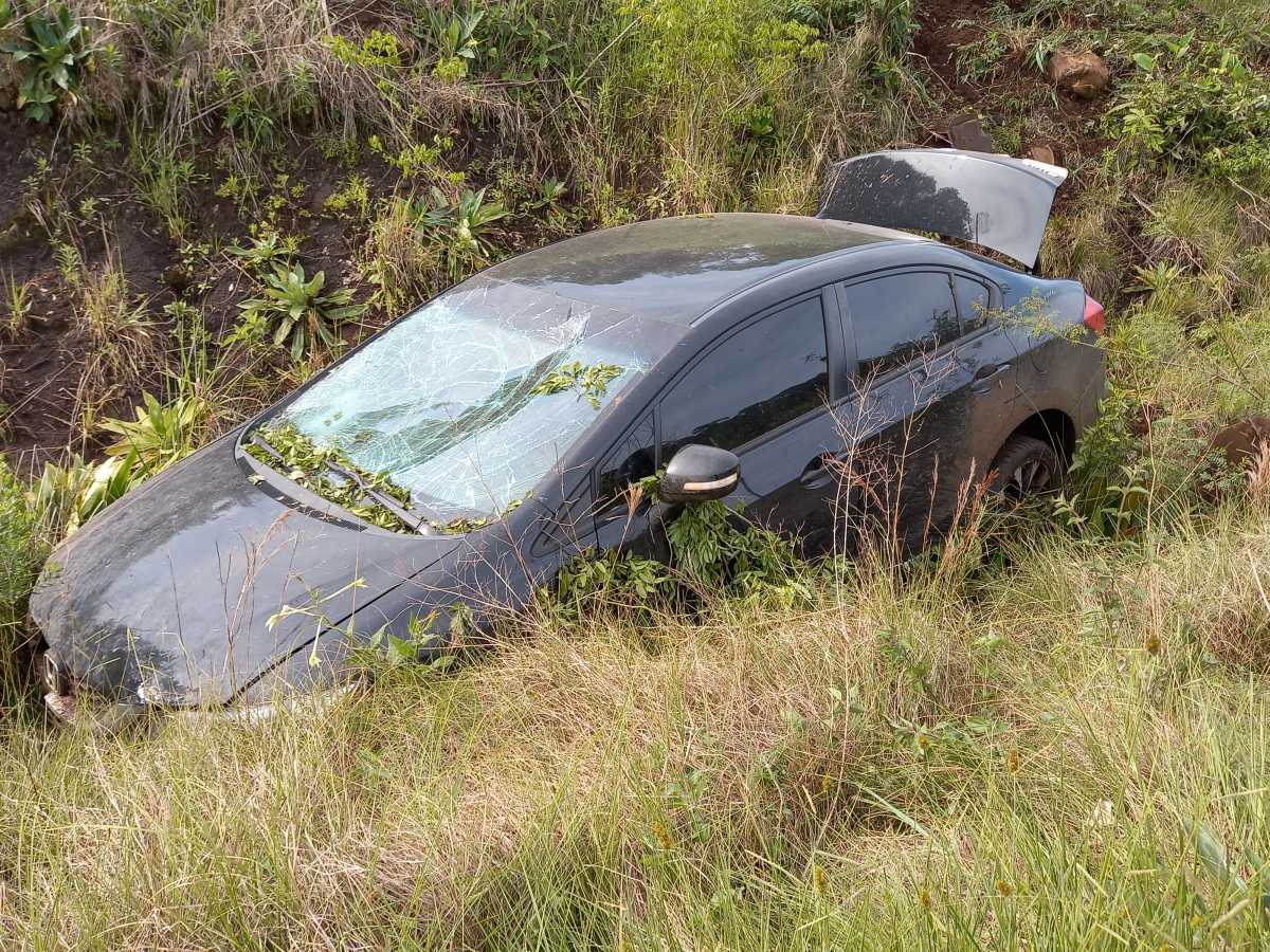 Um Honda Civic de Santa Maria trafegava no sentido Guarani das Missões / Cerro Largo, quando o motorista perdeu o controle e o veículo saiu da pista, caindo numa valeta no lado direito da rodovia.