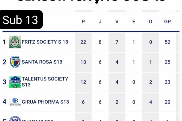 Com esses resultados, as categorias Sub 07 e Sub 13 já estão classificadas para as semifinais da competição, que serão realizadas em Santa Rosa.