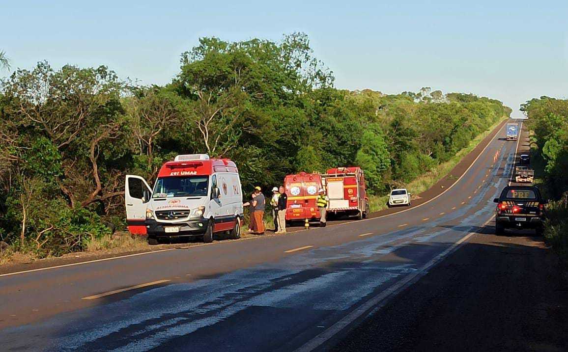 O acidente envolveu uma carreta, com placas de Passo Fundo. O condutor faleceu no local. Ele é natural de Passo Fundo e tem 46 anos. Equipes dos Bombeiros Militares, SAMU e Polícia Civil estão no local para auxiliar no atendimento.