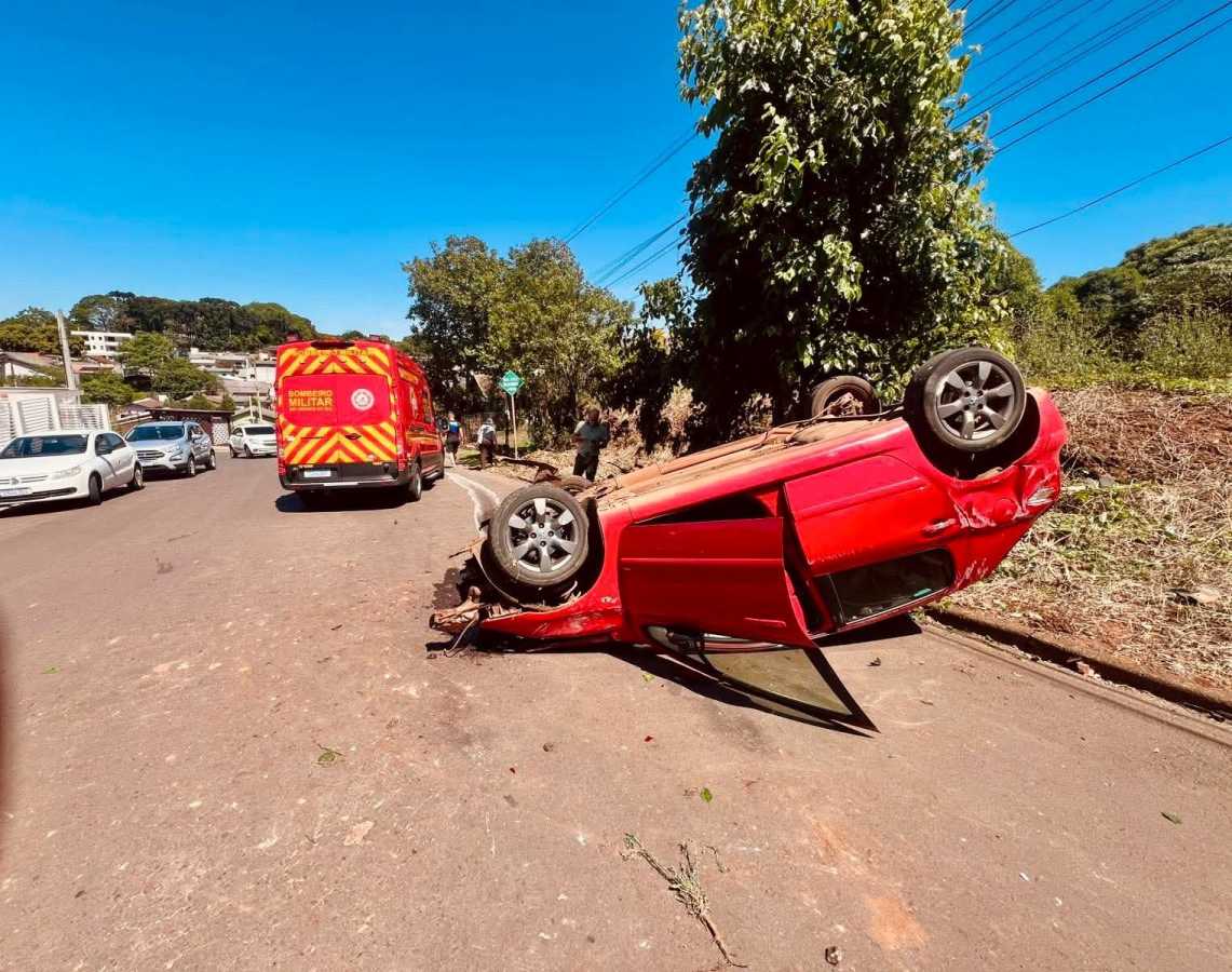 Uma manhã que começou em desespero terminou em susto. Por volta das 9h50min desta terça-feira (11/11), um Peugeot 307 capotou no final da Rua Mauá, entroncamento com a Rua João Thiesen, no bairro Odila, na cidade de Ibirubá, após a condutora perder o controle do veículo e bater contra uma árvore. O carro ficou com danos de grande monta.