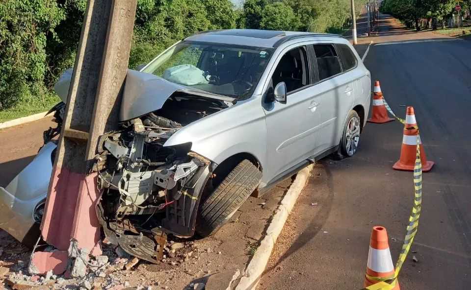 O condutor trafegava no sentido do trevo da BR 392 quando perdeu o controle do veículo, chocando-se contra um poste no canteiro central da via, resultando em danos de relativa monta no carro e no poste.