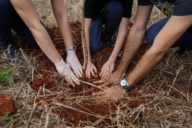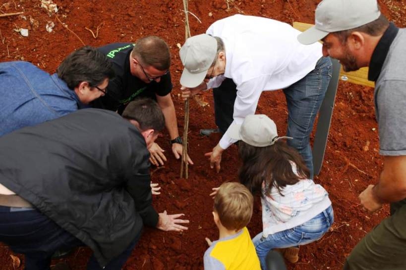 O plantio foi realizado pelos colaboradores da cooperativa e seus familiares. Ao todo serão mil mudas para arborizar o estacionamento do parque. Este projeto foi idealizado na cooperativa e tem apoio da Fenasoja 2020.