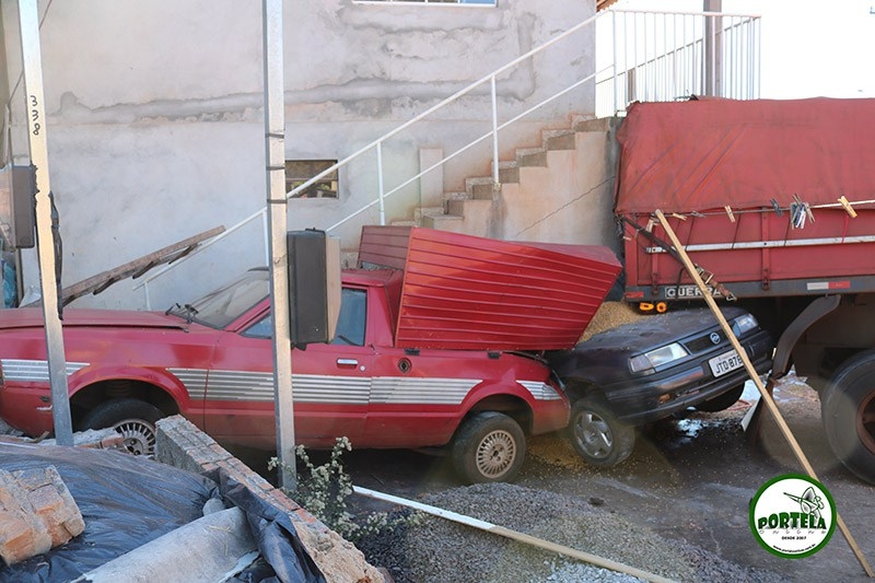 Uma carreta desgovernada desceu em marcha ré uma avenida de Tenente Portela e atingiu dois carros e uma casa na tarde de ontem (6).