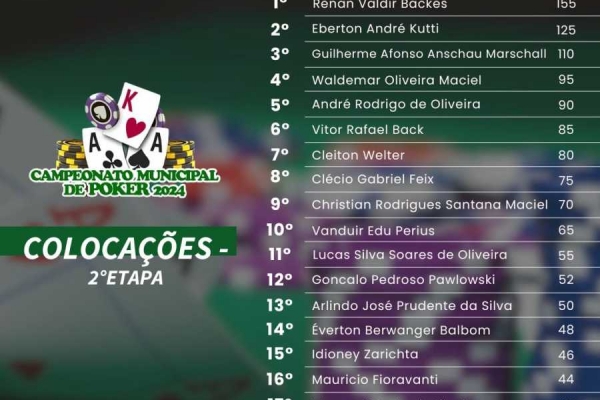 No último sábado (27/5), foi realizada a segunda etapa do Campeonato Municipal de Poker 2024.