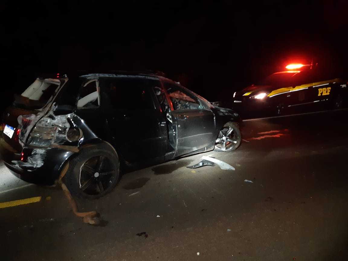 O veículo saiu à esquerda da pista, colidindo com pedras no barranco, sendo projetado de volta pra pista onde capotou por cerca de 80 metros, permanecendo imobilizado no eixo da rodovia.