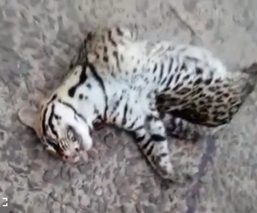 Nas imagens, é mostrado o que seria um felino de grande porte, morto em cima da referida ponte.