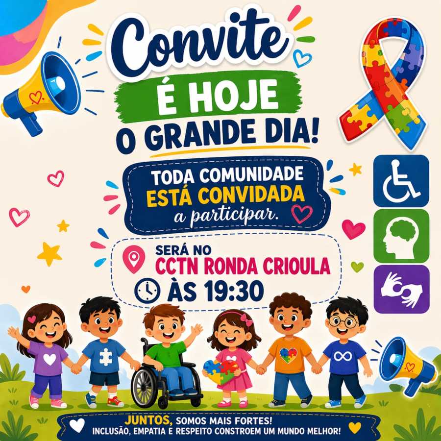 Nesta quinta-feira - 23 de abril, a partir das 19h30min no CCTN Ronda Crioula, acontece uma reunião convocada pela comissão organizadora da Associação de Famílias Atípicas de Cerro Largo.