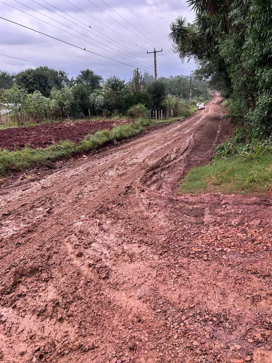 Na semana que passou, a Secretaria de Obras trabalhou naquele trecho, colocando cargas de material. Mas o serviço não foi finalizado e, de acordo com os moradores locais, a estrada ficou pior do que antes, "ficando intransitável".