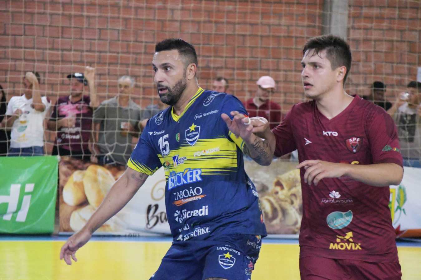 Nos minutos finais do primeiro tempo, Matheus, do Cerro Largo, criou mais uma chance de gol ao sair da marcação e chutar direto, para nova defesa de Alemão. Rafinha também chegou bem. Dominando no pivô, girando e batendo firme, mas novamente Alemão defendeu com o pé. Restando 40 segundos para o intervalo, Dionata, da APF, carregou até o meio e mandou uma bomba, com a bola explodindo no travessão de Black. Grande lance para fechar um primeiro tempo sem gols.