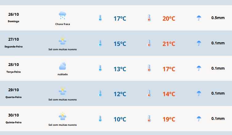 No Oeste e no Sul, pela presença do sol, a temperatura sobe mais e o dia será agradável. Na Metade Norte, pela instabilidade, dia ameno com pequena variação de temperatura.