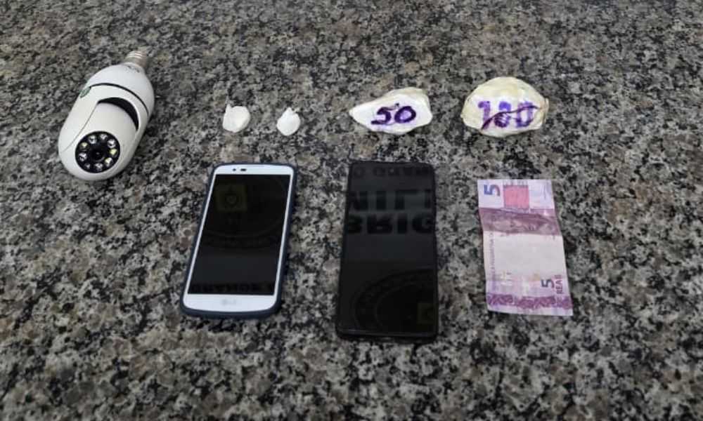 Foram aprendidos dois aparelhos telefônicos. E a droga totalizou aproximadamente 161 gramas de cocaína, podendo render cerca de 300 buchas.