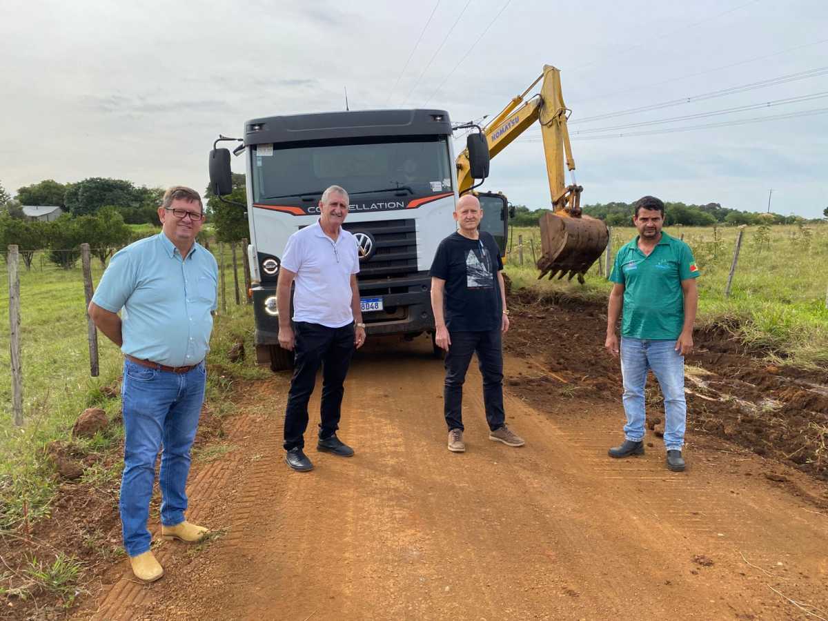 O prefeito Pedro Butzen esteve no local, acompanhado do vice-prefeito Ambrósio Ten Caten e dos secretários Artêmio Winter (Desenvolvimento Econômico, Projetos e Gestão) e André Lubas (Obras).