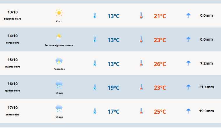 Em Cerro Largo, as temperaturas variam e os 13ºC e os 21ºC.